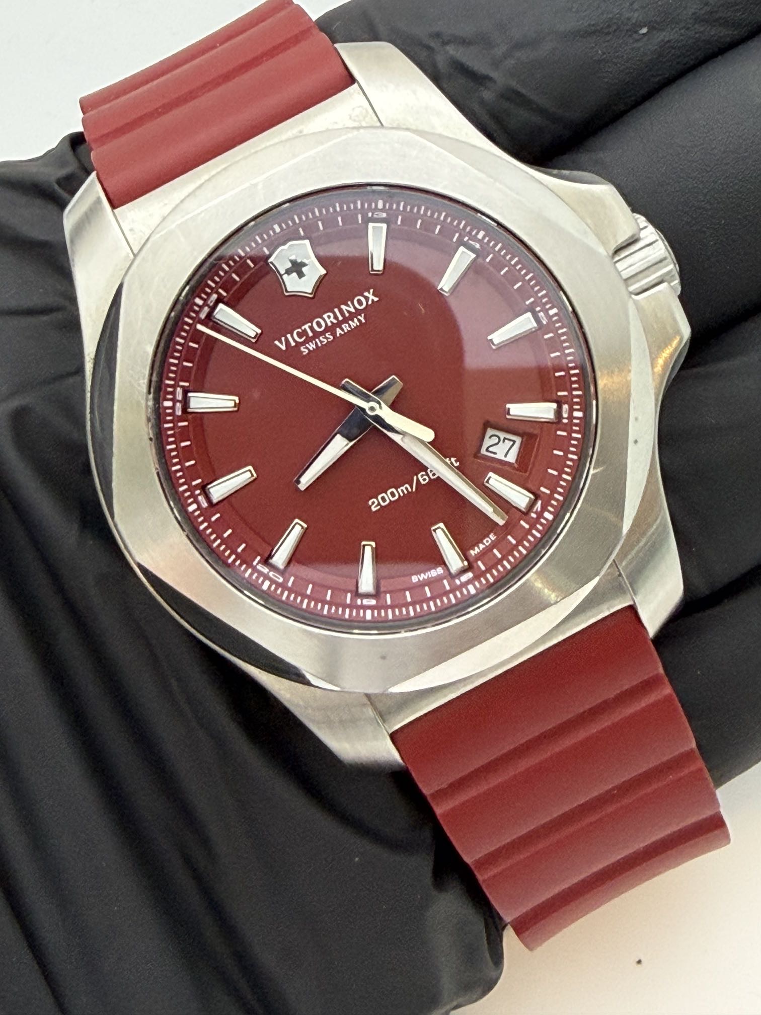 • Modelo: Victorinox I.N.O.X. (específicamente la versión con esfera y correa roja).
